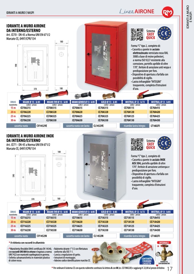* Per ordinare il sistema CE con questo rubinetto sostituisci la lettera A con M (es. CE70M220) e aggiungi € 22,00 al prezzo di listino