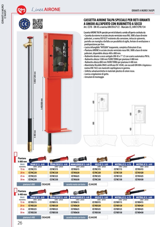 Cassetta AIRONE TALPA speciale per reti di idranti a umido all’aperto costituita da: