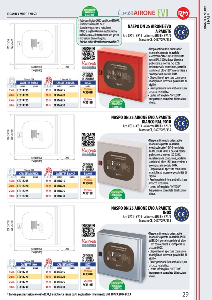 * Lancia per prestazioni elevate K 34,9 a richiesta senza costi aggiuntivi - riferimento UNI 10779:2014 B.2.3