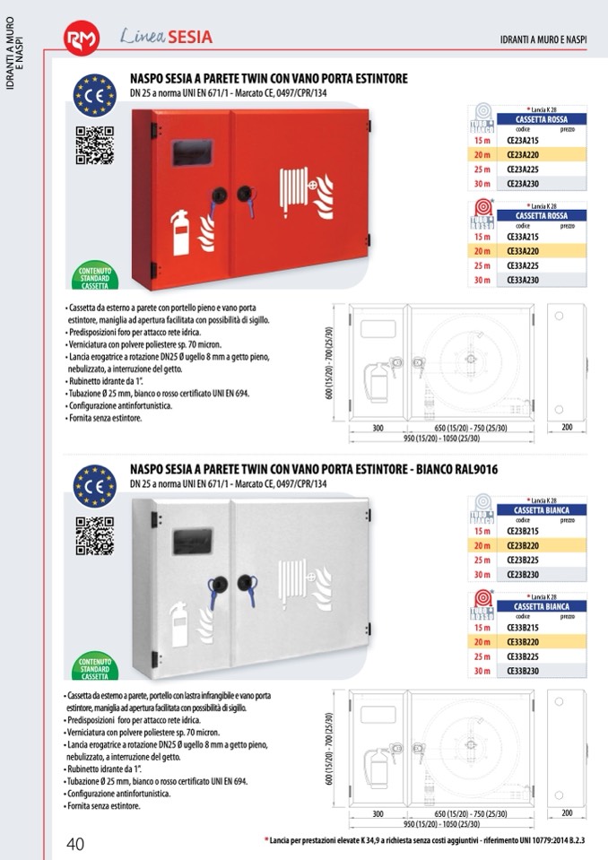 * Lancia per prestazioni elevate K 34,9 a richiesta senza costi aggiuntivi - riferimento UNI 10779:2014 B.2.3