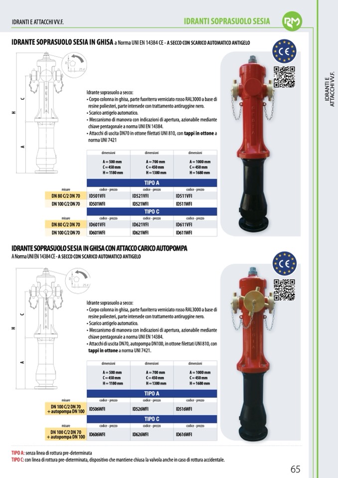 • Corpo colonna in ghisa, parte fuoriterra verniciato rosso RAL3000 a base di