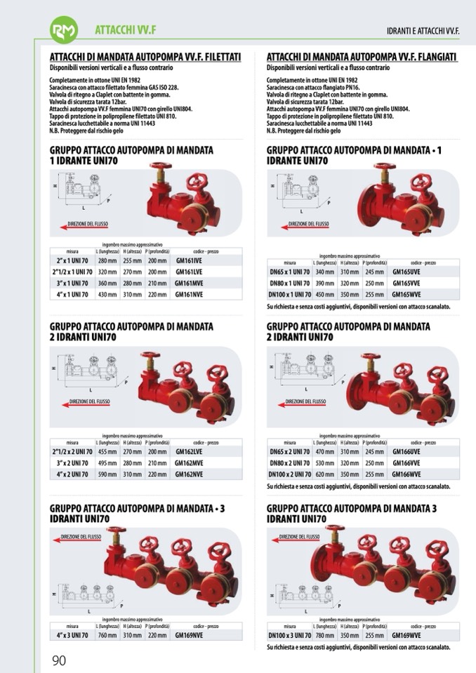 Attacchi autopompa VV.F femmina UNI70 con girello UNI804.