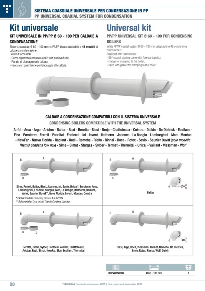 Sistema coassiale Ø 60 - 100 mm in PP/PP bianco adattabile a 48 modelli di