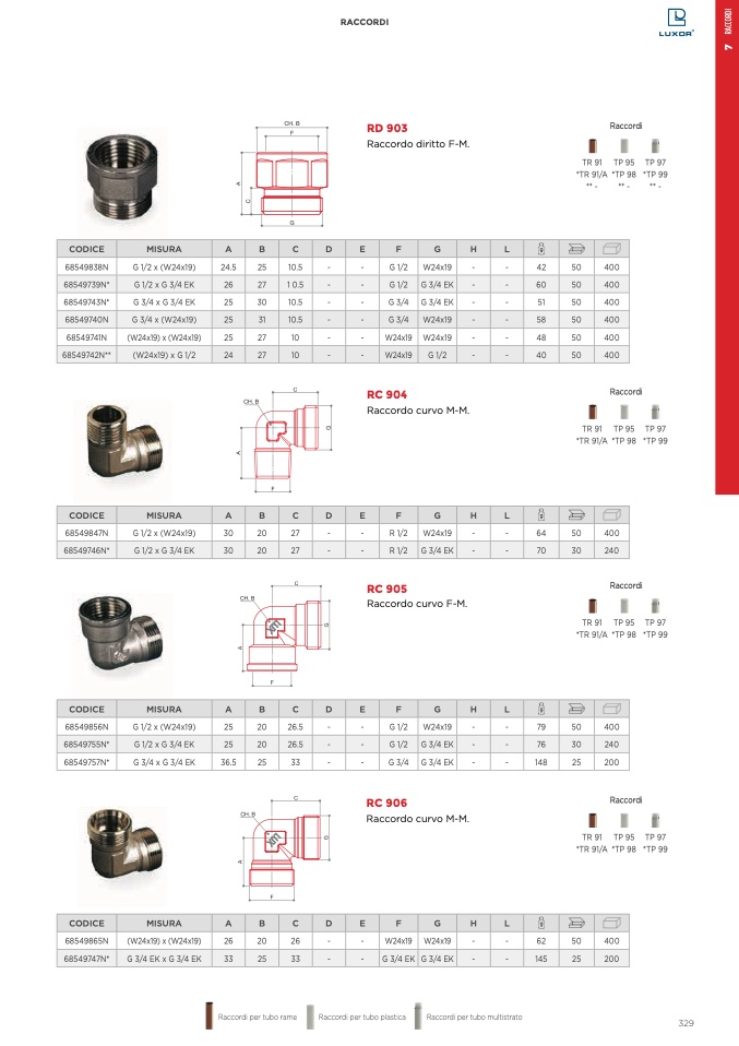 Raccordi per tubo rame