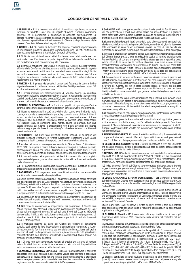 Le presenti condizioni generali risultano pubblicate sul sito Internet di LUXOR