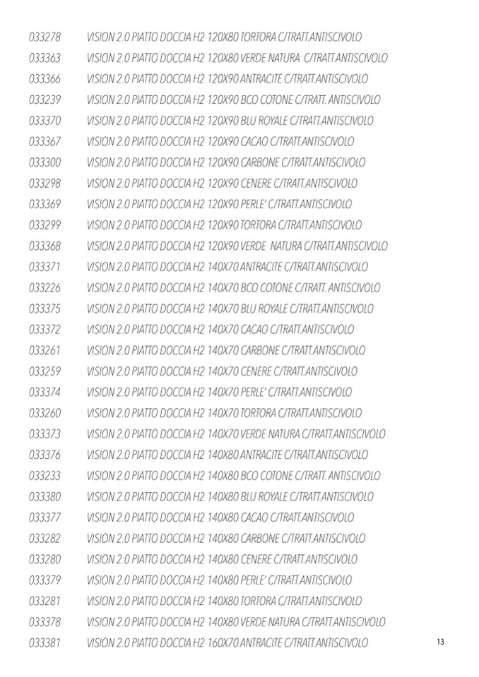VISION 2.0 PIATTO DOCCIA H2 140X80 BCO COTONE C/TRATT. ANTISCIVOLO