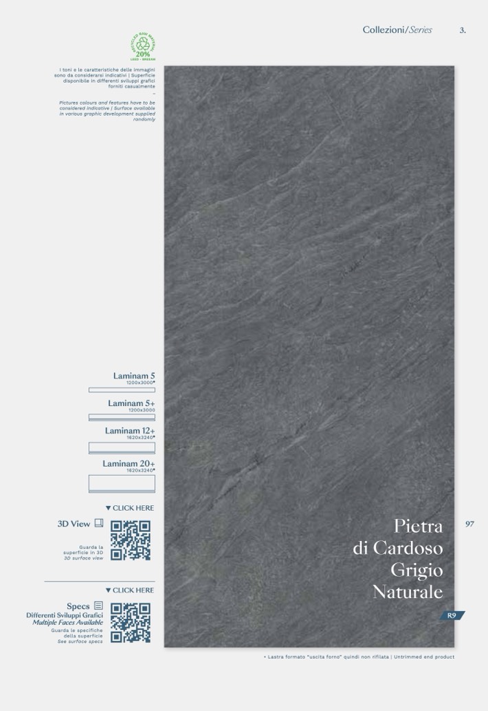 • Lastra formato “uscita forno” quindi non rifilata | Untrimmed end product
