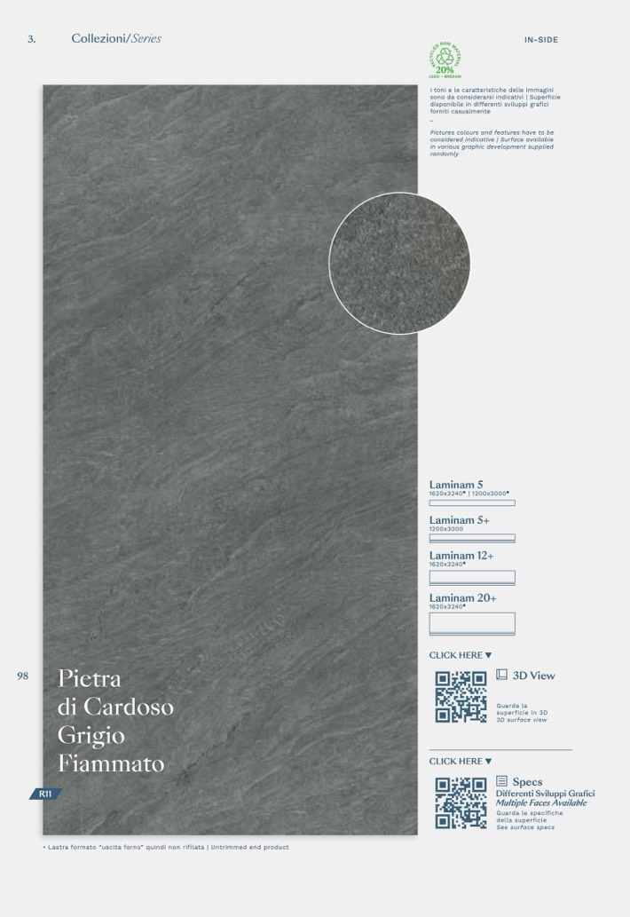 • Lastra formato “uscita forno” quindi non rifilata | Untrimmed end product