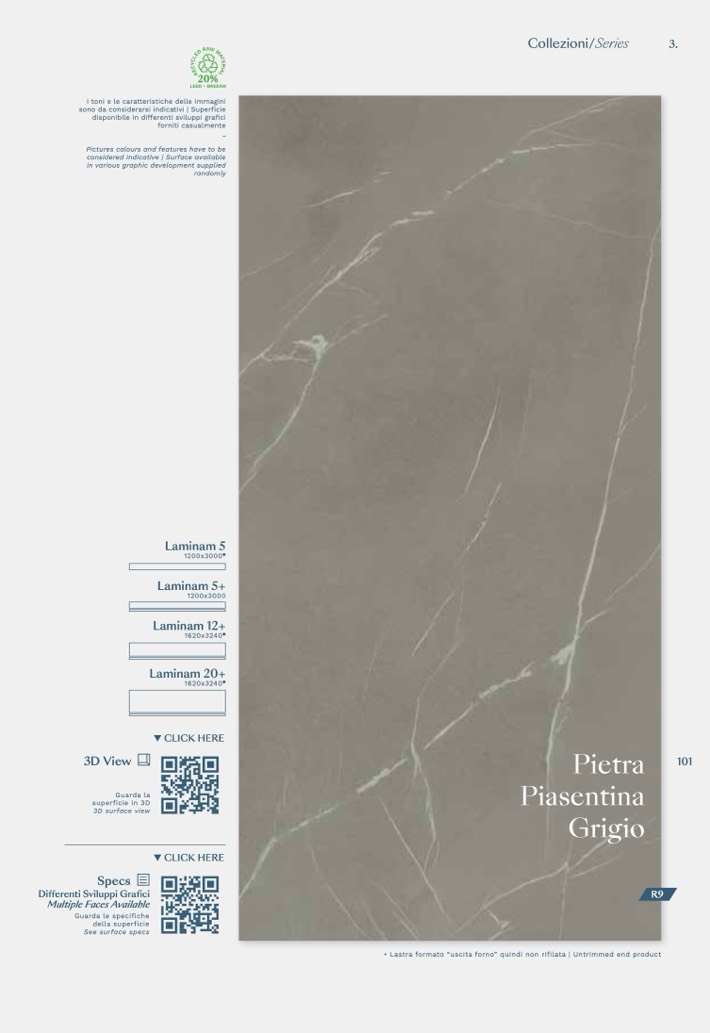 • Lastra formato “uscita forno” quindi non rifilata | Untrimmed end product