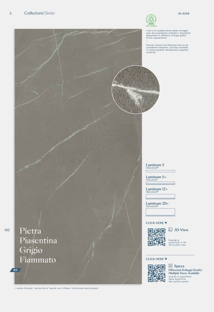 • Lastra formato “uscita forno” quindi non rifilata | Untrimmed end product