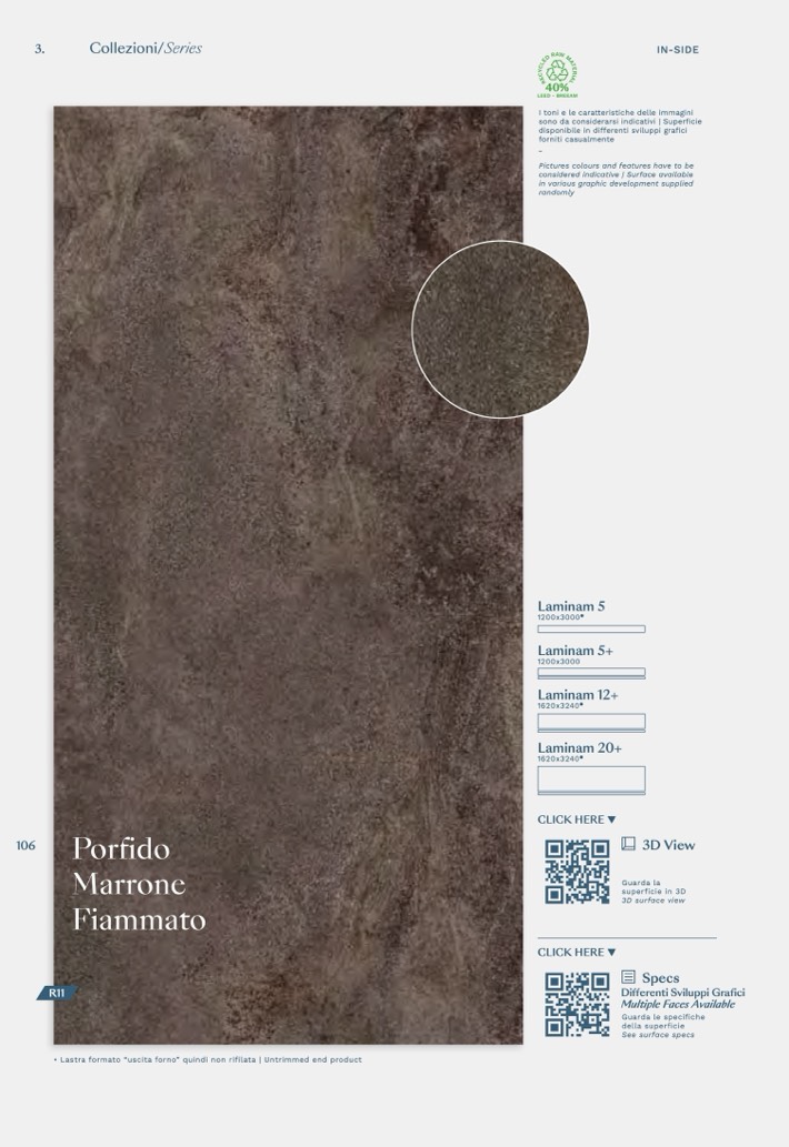 • Lastra formato “uscita forno” quindi non rifilata | Untrimmed end product