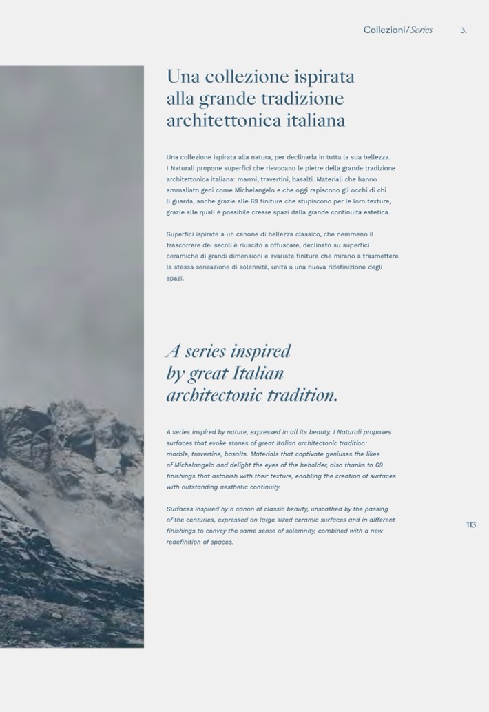 surfaces that evoke stones of great Italian architectonic tradition: