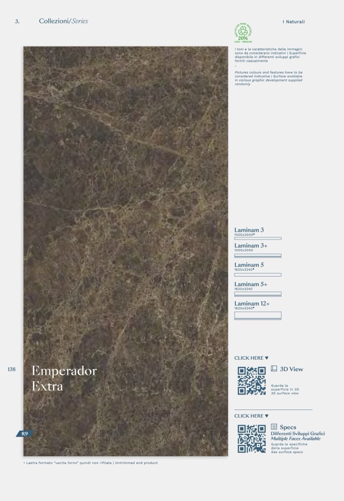 • Lastra formato “uscita forno” quindi non rifilata | Untrimmed end product