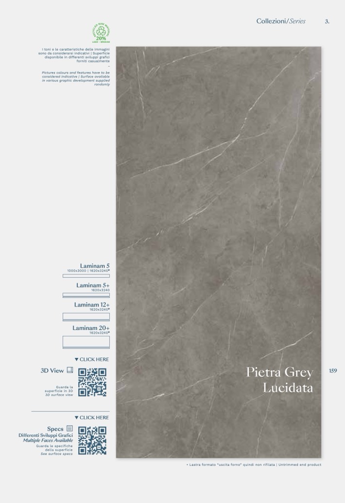 • Lastra formato “uscita forno” quindi non rifilata | Untrimmed end product