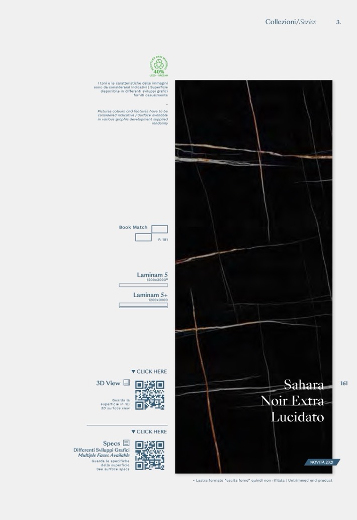 • Lastra formato “uscita forno” quindi non rifilata | Untrimmed end product