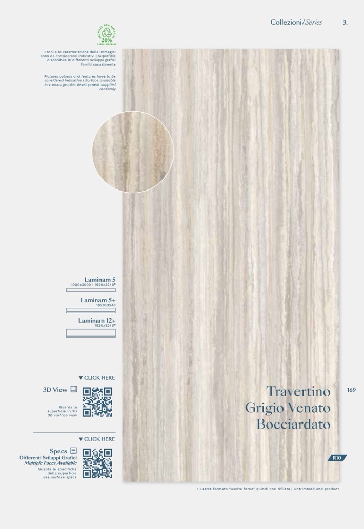 • Lastra formato “uscita forno” quindi non rifilata | Untrimmed end product