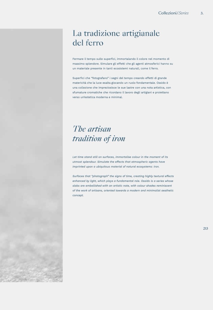 enhanced by light, which plays a fundamental role. Ossido is a series whose