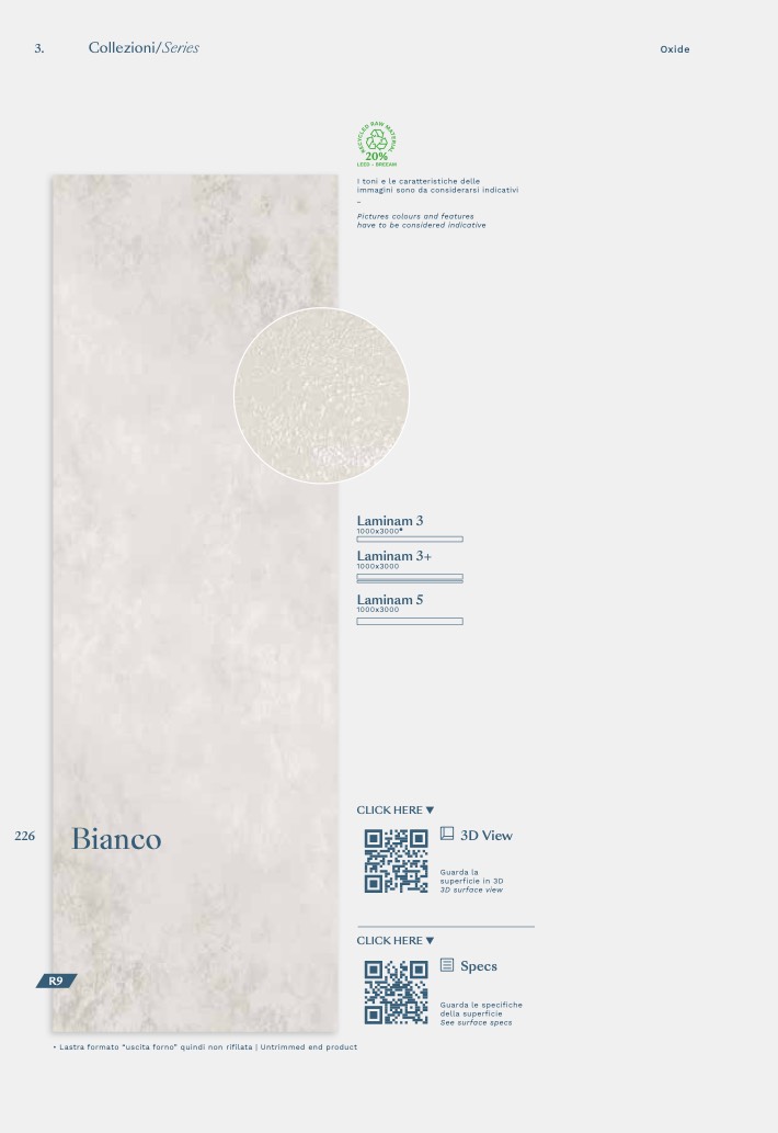 • Lastra formato “uscita forno” quindi non rifilata | Untrimmed end product