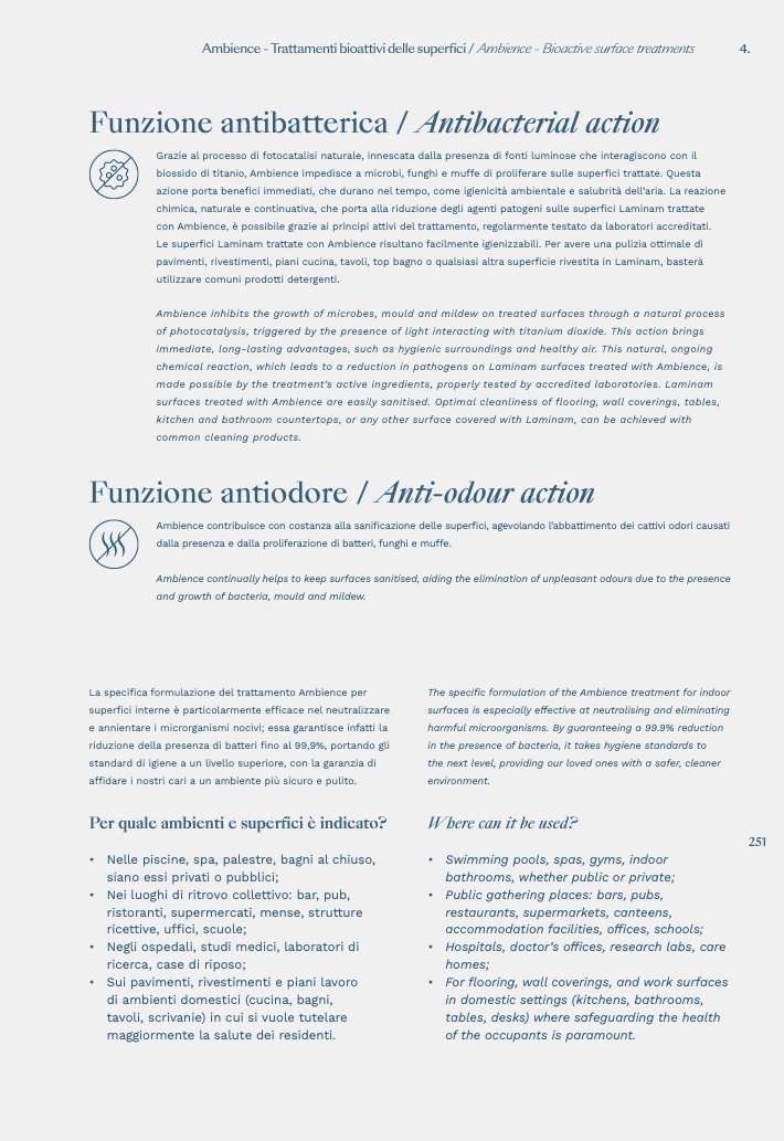 chemical reaction, which leads to a reduction in pathogens on Laminam surfaces treated with Ambience, is