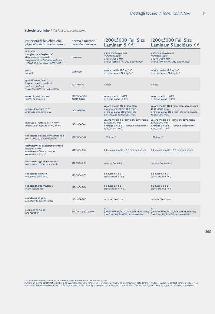 vincolanti / The unique features of Laminam products do not allow for a perfect comparison with ceramic tiles. The test results are therefore only indicative and not binding.