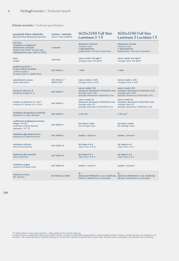 vincolanti / The unique features of Laminam products do not allow for a perfect comparison with ceramic tiles. The test results are therefore only indicative and not binding.