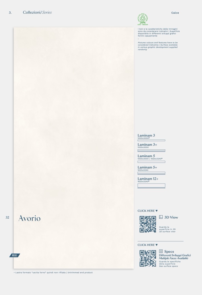• Lastra formato “uscita forno” quindi non rifilata | Untrimmed end product