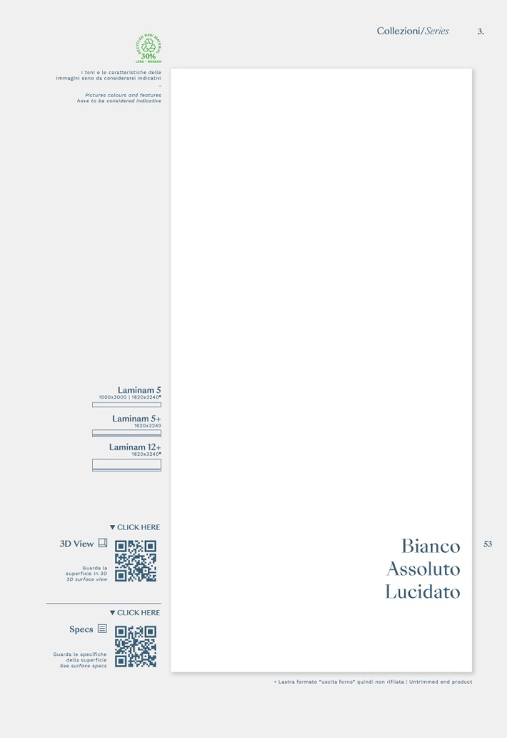 • Lastra formato “uscita forno” quindi non rifilata | Untrimmed end product