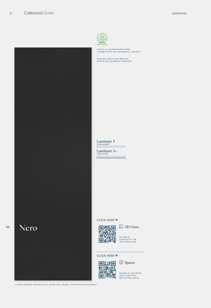 • Lastra formato “uscita forno” quindi non rifilata | Untrimmed end product