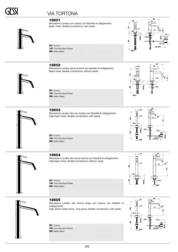 igh basin mixer, flexible connections, with waste