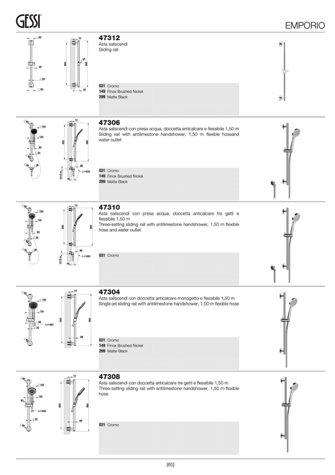 Three-setting sliding rail with antilimestone handshower, 1,50 m flexible