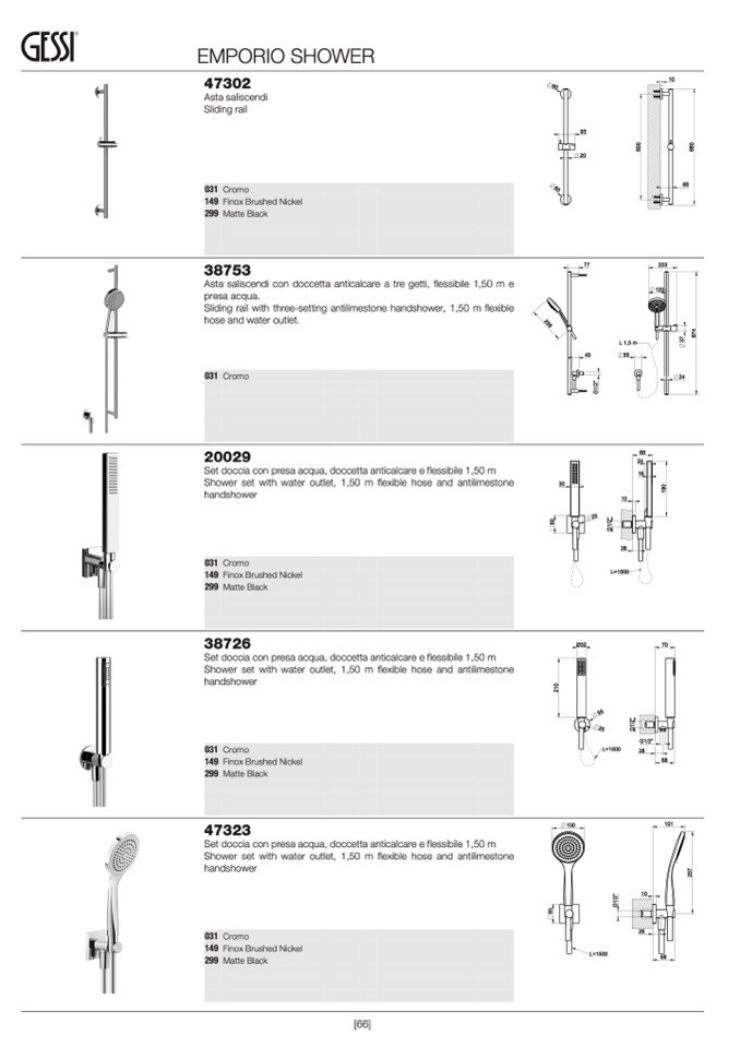 hower set with water outlet, 1,50 m flexible hose and antilimestone