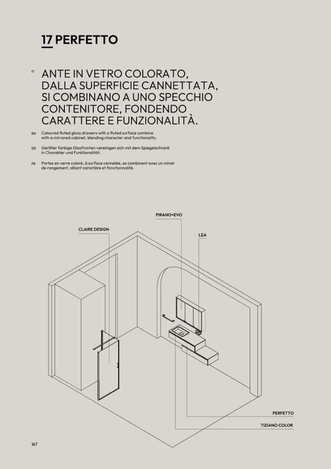 Gerillter farbige Glasfronten vereinigen sich mit dem Spiegelschrank