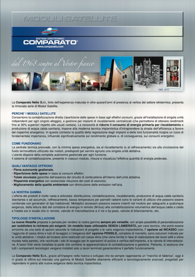 La Comparato Nello S.r.l., forte dell’esperienza maturata in oltre quarant’anni di presenza al vertice del settore idrotermico, presenta