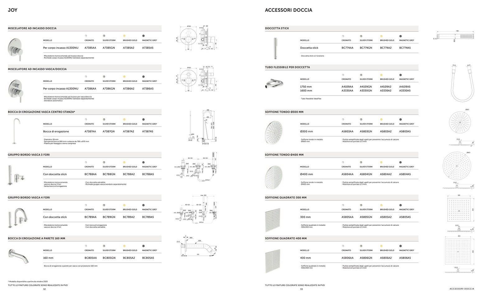 TUTTE LE FINITURE COLORATE SONO REALIZZATE IN PVD