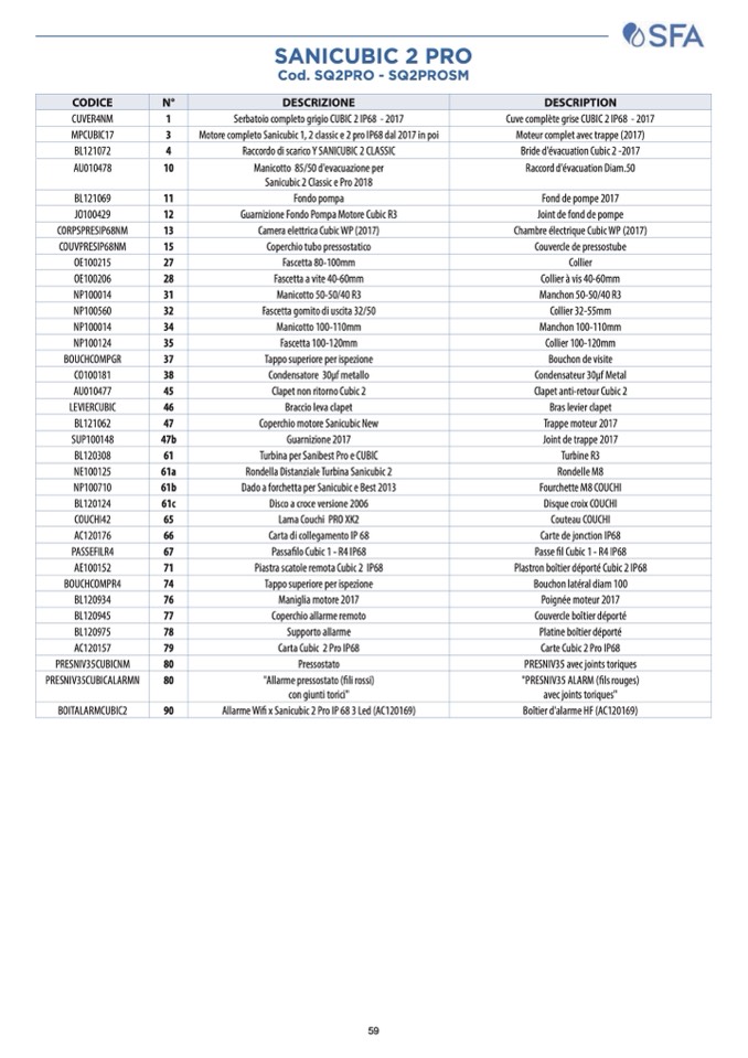 Motore completo Sanicubic 1, 2 classic e 2 pro IP68 dal 2017 in poi