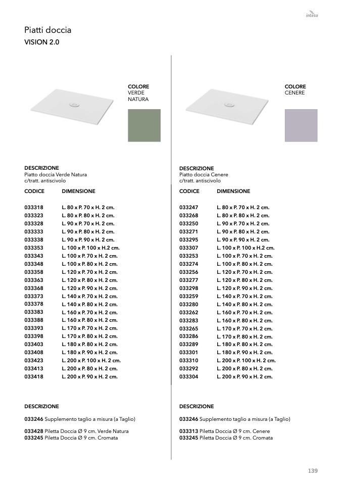033313 Piletta Doccia Ø 9 cm. Cenere
