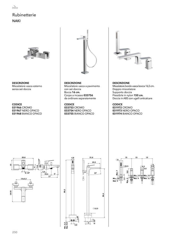 Miscelatore bordo vasca bocca 16,5 cm.