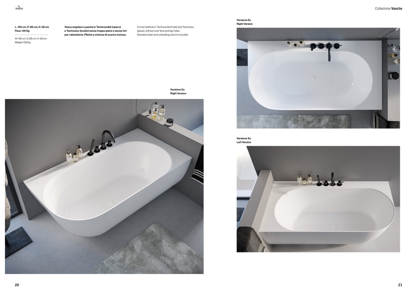 Corner bathtub in Technosolid (matt) and Technolux