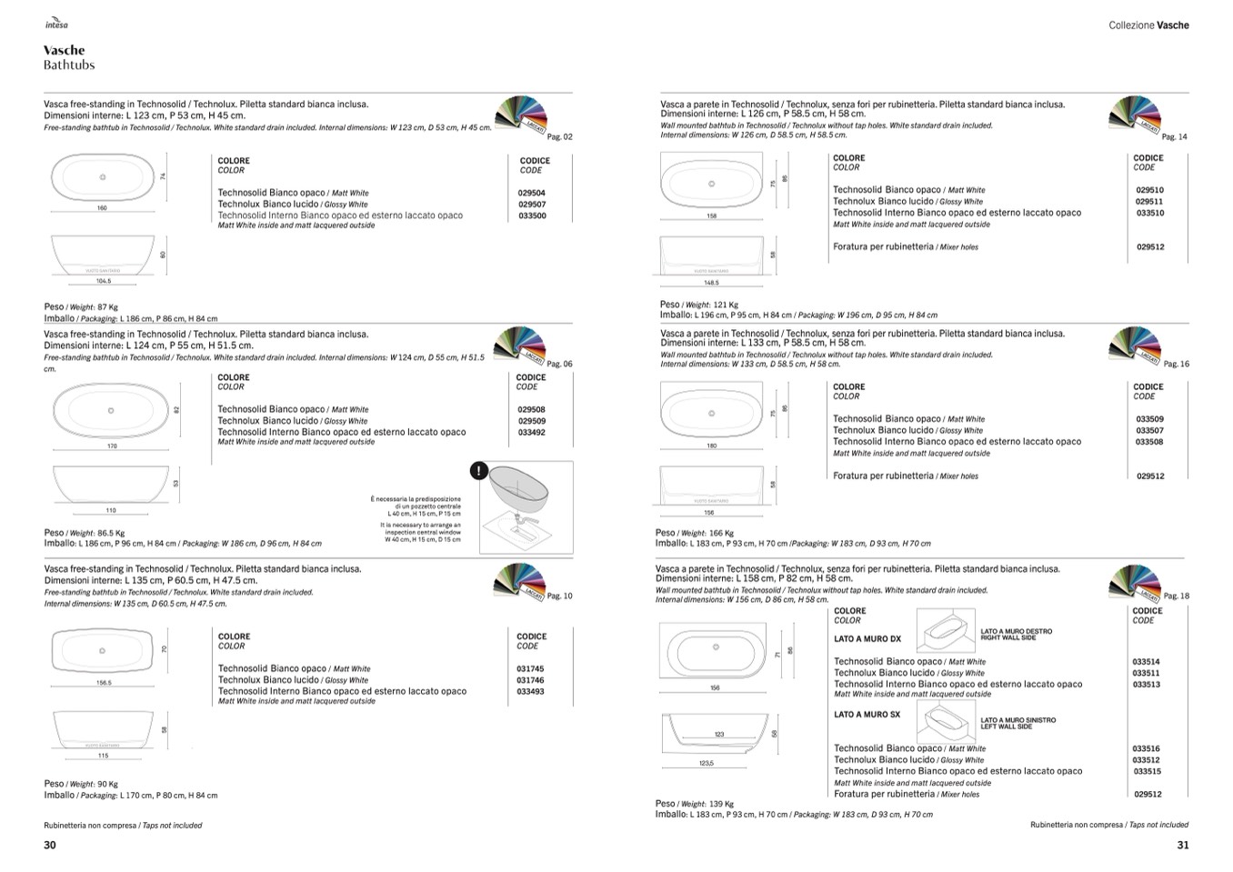 Vasca free-standing in Technosolid / Technolux. Piletta standard bianca inclusa.