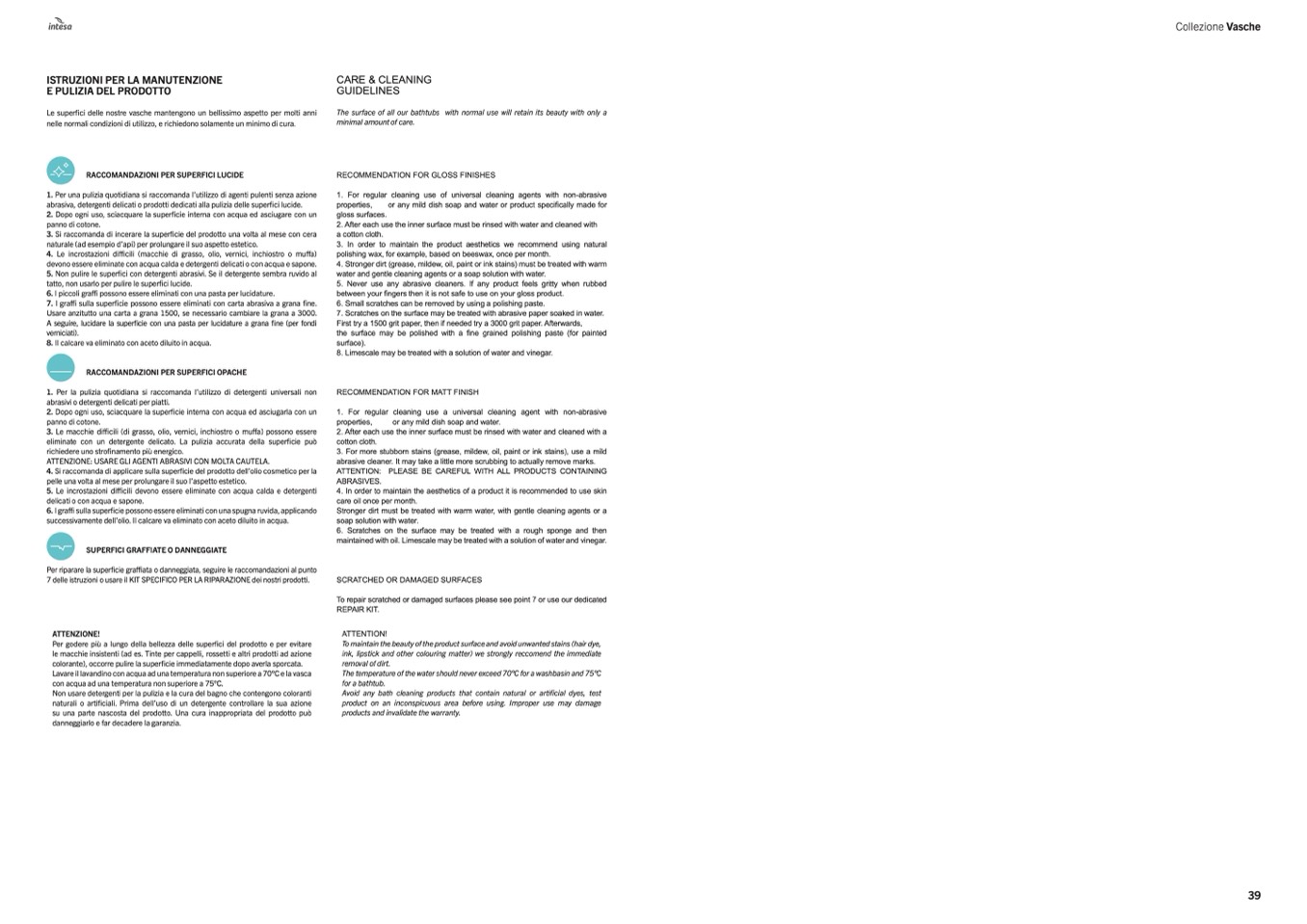 ATTENZIONE: USARE GLI AGENTI ABRASIVI CON MOLTA CAUTELA.