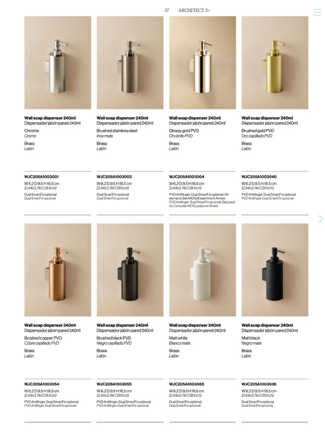 PVD Antifinger. Dual SmartFix opcional. Bajo pedi-