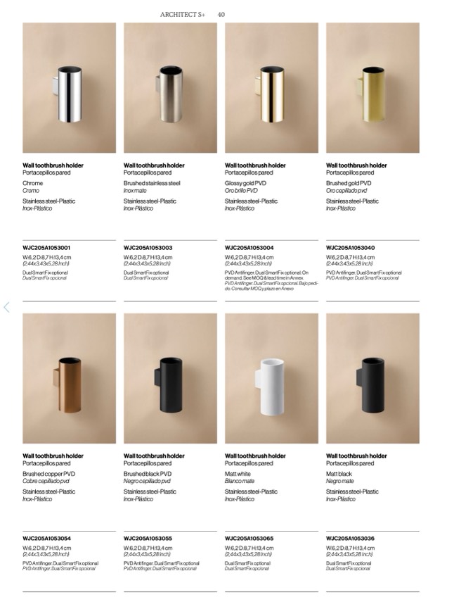 PVD Antifinger. Dual SmartFix optional. On