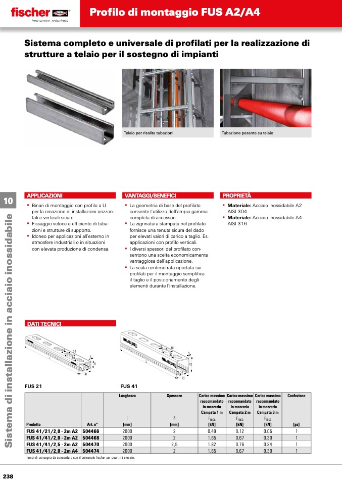 Tempi di consegna da concordare con il personale fischer per quantità elevate.