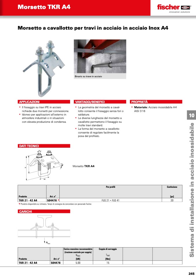 ▼ Prodotto disponibile su richiesta. Tempi di consegna da concordare con personale fischer.
