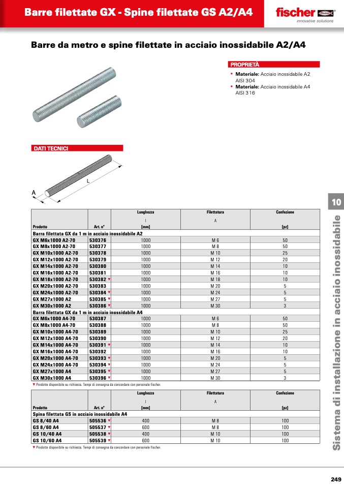 Spina filettata GS in acciaio inossidabile A4