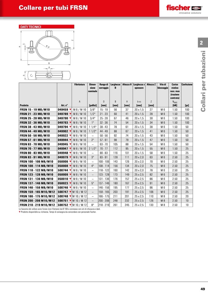 Le fascette del collare sono forate (non filettate) da Ø 166 e connesse con viti di chiusura e dadi.