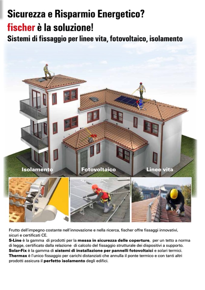 Sistemi di fissaggio per linee vita, fotovoltaico, isolamento