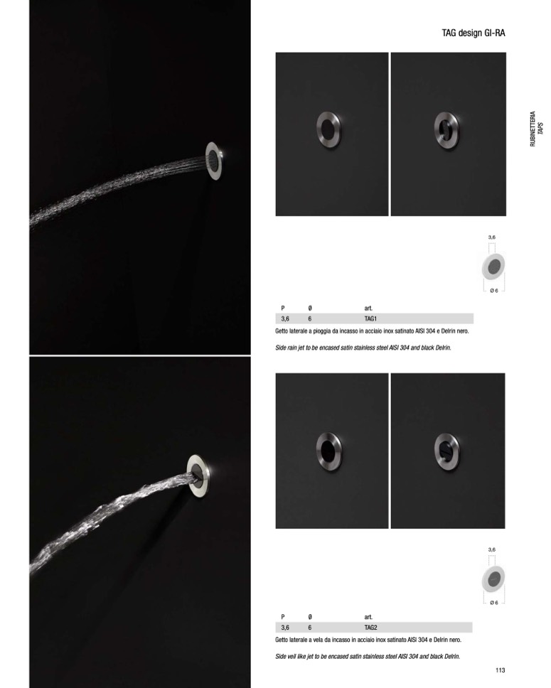 Side rain jet to be encased satin stainless steel AISI 304 and black Delrin.
