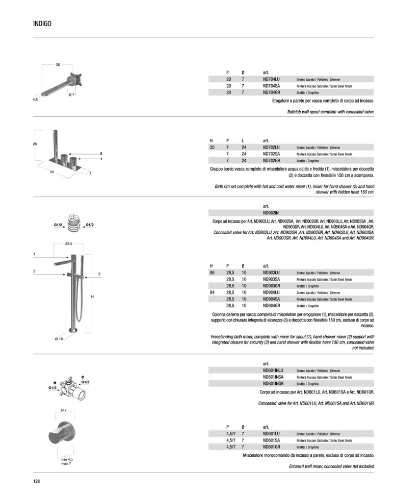 Concealed valve for Art. ND902LU, Art. ND902SA ,Art. ND902GR, Art. ND903LU, Art. ND903SA,