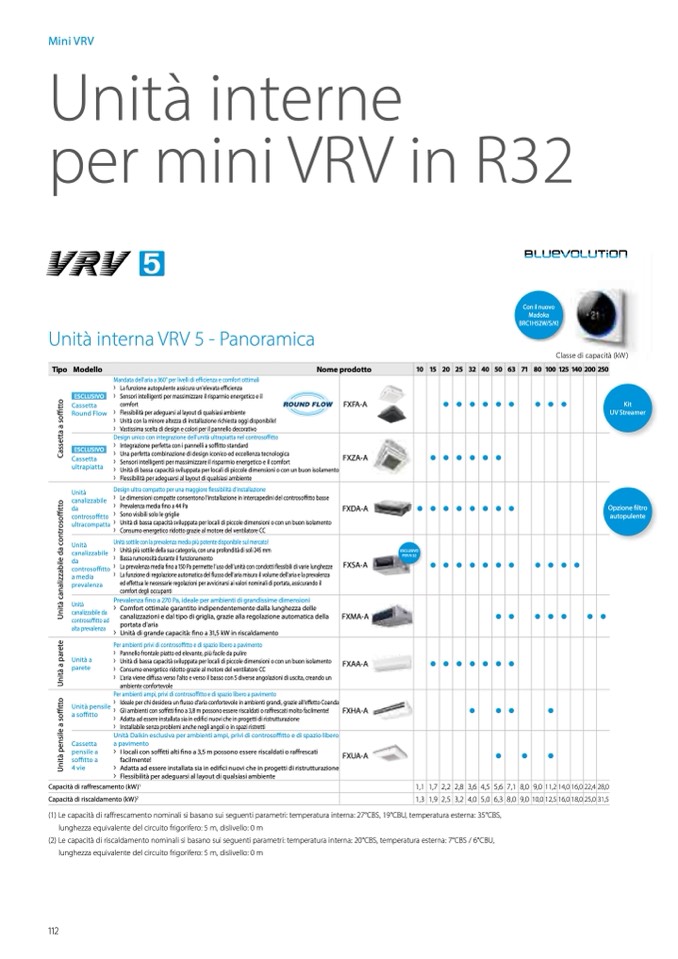 à di raffrescamento nominali si basano sui seguenti parametri: temperatura interna: 27°CBS, 19°CBU, temperatura esterna: 35°CBS,